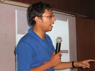 The next morning the KGEC boys were busy making all the final arrangements. I woke up at somebody telling me frantically that they are unable to manage the crowd that had gathered at the areana for registration. The day had started with a good note. I did my cores and rushed to the arena to be surprised by what I saw. The queue was a neat 50 metres long and continued till the institution gate. People were waiting outside in a queue not being able to get in just because there was no room inside the seminar hall, not even to stand. Shreyank and Mitesh Sharma, who came in place of Debayan because Debayan couldn't com due to his friend being very ill, had arrived at Kalyani Main. I gave them directions on how to get to KGEC. Subhodip, Arindam and Ratnadeep were a bit late due to their bus getting caught up in some kind of road block. It was 11:30 and Indranil Das Gupta, the founder of ILUG-Cal had also arrived, inspite of being sick, and have had an informal meeting with the Pricipal and other faculty members regarding the prospects of FOSS and Linux in the college. We started the proceedings at around 11:35 with the indroductory speech of the anhor Snigdhadeb followed by speeches by the Faculty members and HODs who were present there. The hall was jam packed with around 140 - 145 people attending the event. 150 Fedora 10 DVDs and 20 FEL DVDs were distributed amongst the attendees and some faculty members as well. The principal of the CSE department talked about his experiences with Linux, about how everybody used to laugh at people who used Linux. His encouraging speech was followed by our very own Indranil da talking about the evolution of Linux and FOSS in India, how he managed to install Linux in those pre graphics days. His information impregnated speech touched the topics like LUG culture, GSoC, OSM, FOSS in India, mailing lists and many more things. He also tried to explain how one can contribute to FOSS exemplified aptly by Sayamindu Dasgupta, Arindam Ghosh, Gopal V. and Subhodip Biswas. He ended his speech quoting President Obama, "We will be the Agents of Change" and "Yes We can". Though he was ver interested to stay for the whole day, but he had to leave to attend a meeting in Kolkata. His speech really inspired the participants and got the rhythm going.